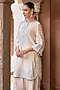 Sheetal Batra presents a daisy ivory short kurta crafted in silk chanderi, adorned with delicate scalloped detail, blue parsi gara, sequins, and pearl embroidery. It is paired with bemberg satin dhoti pants, creating a light and festive silhouette. Style it with kundan polki jewellery, a potli bag, and block heels for sangeet, or celebratory occasions.