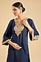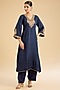 Deep Blue Pure Upada Silk Moti Kirandori Embellished Kurta Set