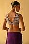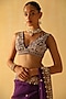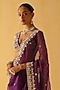 Sheetal Batra features a deep purple saree in silk organza base with dabka and zardosi embroidery. It is paired with a raw silk embroidered blouse having a v-neck. Accentuate with statement jewellery and heels for a wedding or sangeet ceremony.