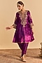 Deep Purple Velvet Silk Embroidered A-Line Kurta Set