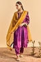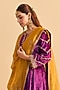 Sheetal Batra presents a deep purple choga kurta crafted in velvet silk base with sequins, pearls and aari tilla embroidery. It is paired with embroidered salwar pants and a tissue silk dupatta. Accentuate the look with ethnic earrings, an embellished potli bag and wedges for perfect festive gatherings, wedding functions or cultural celebrations.