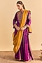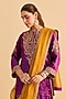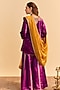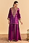 Sheetal Batra presents a deep purple kurta crafted in velvet silk base with sequins, pearls and aari tilla embroidery. It is paired with embroidered sharara pants and a tissue silk dupatta. Accentuate the look with ethnic earrings, an embellished potli bag and wedges for perfect festive gatherings, wedding functions or sangeet celebrations.