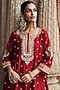Sheetal Batra presents a mesmerizing deep red choga kurta in pure silk chanderi banarasi base with bell sleeves, pearl, sequins, kashmiri tilla and gota patti embroidery. It is paired with bamberg satin salwar pants. Style it with meenakari statement earrings, a half-up braided hairstyle and wedges, ideal for sangeet ceremonies or colorful festive gatherings.
