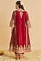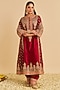 Deep Red Silk Chanderi Dabka Embroidered Choga Kurta Set