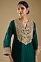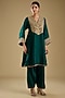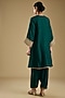 Featuring an emerald green choga kurta in pure upada silk base with kirani dori and pearl embroidery, including a zero neckline and bell sleeves. It is paired with banarasi dogri salwar pants. Accentuate it with dangler earrings and heels for festive occasions or pooja ceremonies.