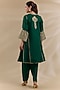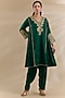 Featuring an emerald green kurta in upada silk base. It is paired with pants. Accentuate it with statement jewellery and heels for a modern regal touch,ideal for festive ocassions or wedding ceremonies.