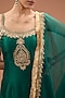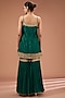 Featuring a green short kurta in pure silk chanderi base with a scoop neckline and kashmiri tilla embroidery. It is paired with georgette gharara pants and a silk organza dupatta. Accentuate it with dangler earrings and heels for a festive occasion or engagement ceremony.
