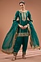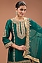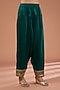 Featuring a green A-line kurta in pure silk chanderi base with a zero neckline and three-quarter bell sleeves, including kiran dori and sitara embroidery. It is paired with bemberg satin dogri salwar pants and a silk organza dupatta. Accentuate it with dangler earrings and heels for a festive occasion or mehendi ceremony.