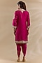 Featuring a hot pink kurta in chanderi silk base with kashmiri tilla embroidery, mandarin collar and a placket. It is paired with bemberg satin dhoti pants. Accentuate it with statement jewellery and heels for a modern regal touch,ideal for festive occasions or wedding ceremonies.