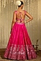 Featuring a hot pink lehenga in pure raw silk base with kiran dori and sitara embroidery. It is paired with a blouse having a deep scoop neckline and a silk organza dupatta having boota work. The lehenga is finished with a contrast banarasi and kinari detailing. Style it with polki jewellery, an embellished clutch and heels for a wedding or engagement ceremonies.
