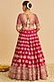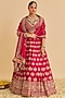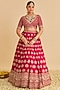 Sheetal Batra presents a hot pink lehenga in pure raw silk base with dabka and zardozi embroidery. It is paired with an embroidered blouse having a deep V-neckline and a silk organza embroidered dupatta having banarasi detailing. Accentuate it with kundan polki jewellery, embellished heels and a potli bag for a complete look, perfect wear for a wedding, sangeet or engagement ceremony.