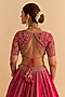 Featuring a hot pink lehenga in pure raw silk base with dabka zardosi embroidery. It is paired with a blouse having a V-neckline and a silk organza dupatta. Accentuate it with zircon jewellery and heels for wedding, sangeet or engagement ceremony.
