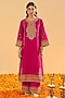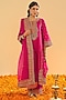 Hot Pink Silk Chanderi Dabka Embroidered A-Line Kurta Set