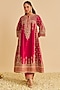 Hot Pink Silk Chanderi Dabka Embroidered Choga Kurta Set