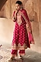 Hot Pink Silk Chanderi Kashmiri Tilla Embroidered A-Line Kurta Set