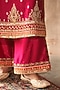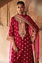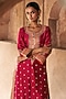 Sheetal Batra presents a mesmerizing hot pink A-line kurta in silk chanderi base with pearl, sequins, kashmiri tilla and gota patti embroidery. It is paired with palazzo pants and a silk organza dupatta. Style it with kundan polki earrings, a braided hairstyle and block heels, ideal for weddings or a bridal look.