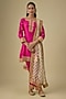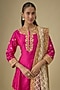 Featuring a hot pink A-line short kurta in silk chanderi base with a mandarin collar, gota patti, dabka and zardozi embroidery. It is paired with bemberg satin salwar pants and a silk organza tissue dupatta. Accentuate it with jhumkas and embellished juttis for a wedding ceremony, festive celebration or traditional gathering.
