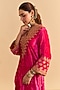 Sheetal Batra presents a hot pink kurta crafted in velvet silk base with sequins, pearls and aari tilla embroidery, including a V-neckline. It is paired with embroidered salwar pants. Accentuate the look with ethnic earrings, an embellished potli bag and wedges for perfect festive gatherings, wedding functions or cultural celebrations.