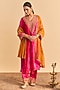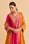 Sheetal Batra presents a hot pink kurta crafted in velvet silk base with sequins, pearls and aari tilla embroidery, including a V-neckline. It is paired with embroidered salwar pants and a tissue silk dupatta. Accentuate the look with ethnic earrings, an embellished potli bag and wedges for perfect festive gatherings, wedding functions or cultural celebrations.