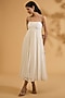 Featuring an ivory ankle-length dress in chanderi silk and georgette base with glass beads, pearl and sequins embroidery. Elevate your style with bold statement jewelry and chic high heels for a complete look.