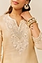 Beige Chanderi Silk Embroidered A-Line Kurta Set For Girls