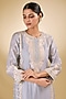 Featuring a blue kurta for girls in pure silk chanderi base with tilla, gota, and parsi gara embroidery. It is paired with a bamberg satin tulip dhoti. Style it with sandals and a matching hairband for a cute and comfortable festive look, perfect for family gatherings, festive poojas or cultural celebrations.