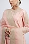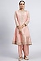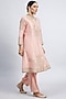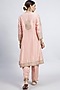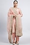 Featuring a carnation pink princess-cut short kurta in chanderi silk banarsi, bamber satin, and silk organza base with tilla embroidery, pearl detailing, mandarin collar, and a placket. It is paired with matching salwar pants and a dupatta.
