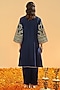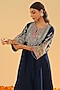 Deep Blue Pure Silk Chanderi Embroidered Kurta Set For Girls