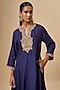 Deep Blue Uppada Silk Dori Embroidered Kaftan Set For Girls
