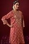 Deep Red Upada Silk Aari Embroidered Kurta Set For Girls