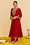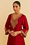 Deep Red Upada Silk Dori Embroidered Kurta Set For Girls