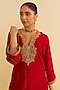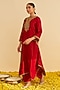 Deep Red Upada Silk Kiran Dori Embroidered Kaftan Set For Girls