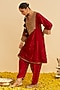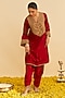 Deep Red Upada Silk Kiran Dori Embroidered Kurta Set For Girls