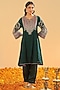 Emerald Green Pure Silk Chanderi Embroidered Kurta Set For Girls