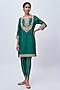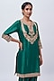 Green Pure Silk Chanderi Embroidered Kurta Set For Girls