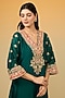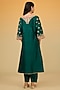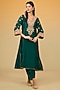 Featuring a green kurta for girls in silk chanderi banarasi base with a deep V-neckline, applique, kashmiri tilla, gota and kundan hand embroidery. It is paired with a bamberg satin choga salwar. Style it with cute hair accessories and sandals for a festive occasion or wedding ceremony.