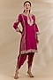 Hot Pink Chanderi Silk Kashmiri Tilla Embroidered Kurta Set For Girls