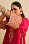 Hot Pink Pure Upada Silk Gota Embroidered Kurta Set For Girls