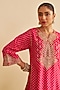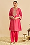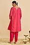 Hot Pink Pure Upada Silk Gota Embroidered Kurta Set For Girls