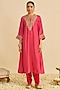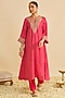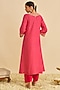 Hot Pink Pure Upada Silk Sequins Embroidered Kaftan Set For Girls