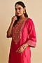 Hot Pink Pure Upada Silk Sequins Embroidered Kurta Set For Girls