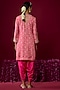 Hot Pink Upada Silk Embroidered Kurta Set For Girls
