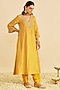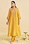Mustard Pure Upada Silk Aari Embroidered A-Line Kaftan Set For Girls