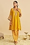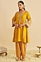 Mustard Pure Upada Silk Gota Embroidered Kurta Set For Girls