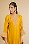 Featuring a mustard kurta for girls in pure uppada silk with three-quarter bell sleeves, pearl, and kiran dori embroidery. It is paired with a dogri salwar. Accentuate with an embellished headband and a sling bag for a festive occasion or family gathering.