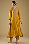 Mustard Pure Uppada Silk Embroidered Kaftan Set For Girls