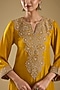 Featuring a mustard kaftan for girls in pure uppada silk base with kirani dori and pearl embroidery. It is paired with dogri salwar. Accentuate with an embellished headband and a sling bag for a festive occasion or family gathering.