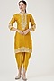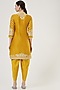 Featuring a mustard kurta for girls in silk chanderi base with dori embroidery. It is paired with matching bamberg satin dogri salwar pants having pearl and lace finishing.