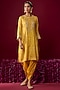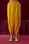 Featuring a mustard yellow short kurta for girls in upada silk with gota edge detail, delicate pearls, sequins, and aari tilla embroidery. It is paired with an upada silk dhoti. Style it with sandals and a matching hairband for a cute and comfortable festive look, perfect for family gatherings, festive poojas or cultural celebrations.