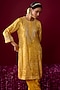 Mustard Yellow Upada Silk Aari Embroidered Kurta Set For Girls